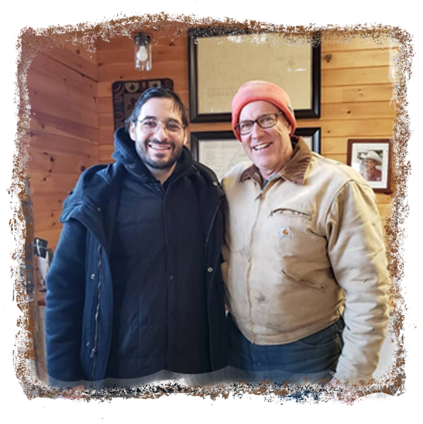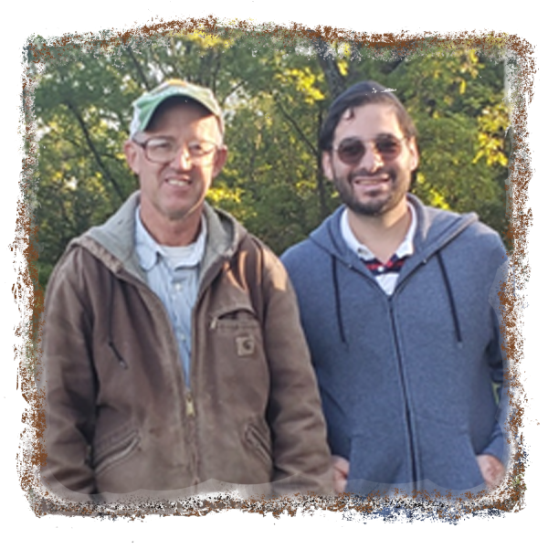 Shalom Gelbman (L) pictured with Joel Salatin (R) at Polyface Farm